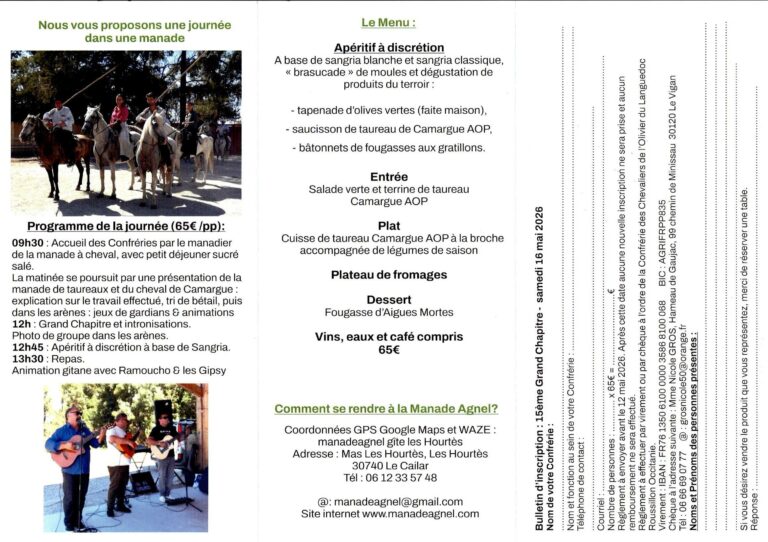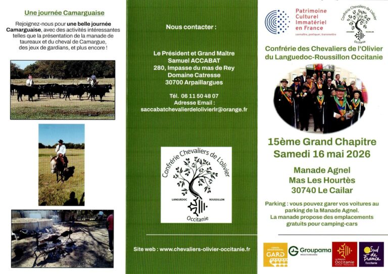 Retenez la date de notre Grand Chapitre et notez là dans vos agendas ! Le Grand Chapitre aura lieu à Le Cailar dans le Gard. Pour télécharger le flyer (format PDF), veuillez cliquer ICI