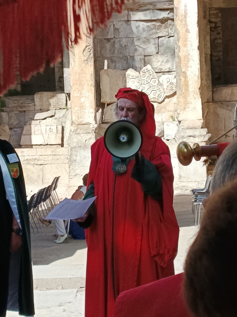 Comme prévu, notre confrère Christian Meyrueix , a endossé ce jour, l’habit des Consuls de NÎMES, pour en faire lecture, enrichie par les explications historiques de notre confrère Jacques LAUZE.